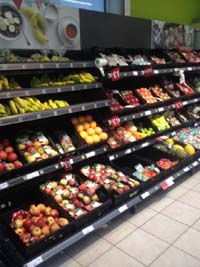 Fantastic choice of food and drinks, including fresh fruit and vegetables.